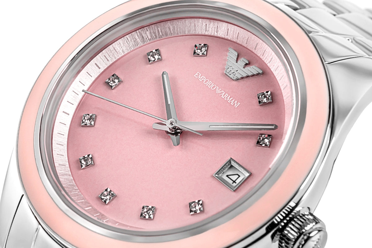 Zegarek Damski Emporio Armani Leo AR11546 to połączenie nowoczesnej elegancji i kobiecego uroku. Zaprojektowany z dbałością o każdy detal, zachwyca subtelną różową tarczą ozdobioną delikatnymi kryształkami, które pięknie odbijają światło. Koperta o średnicy 36 mm wykonana została z wysokiej jakości stali szlachetnej, dzięki czemu zegarek jest trwały i odporny na codzienne użytkowanie. Srebrna bransoleta doskonale komponuje się z kolorem tarczy, tworząc harmonijną i stylową całość. Precyzyjny mechanizm kwarcowy gwarantuje niezawodne działanie, a wodoszczelność na poziomie 5 ATM chroni zegarek przed zachlapaniami i krótkim kontaktem z wodą. Emporio Armani Leo AR11546 to idealny wybór dla kobiet, które cenią elegancję, funkcjonalność i ponadczasowy styl. To nie tylko zegarek, ale biżuteryjny dodatek, który podkreśli każdą stylizację i doda jej luksusowego charakteru.