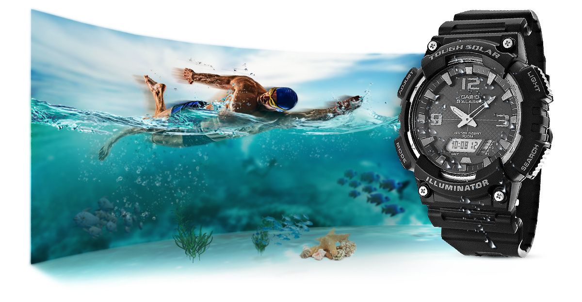 Dzięki wbudowanemu panelowi słonecznemu ten model AQ-S810W nie potrzebuje zasilania baterią.