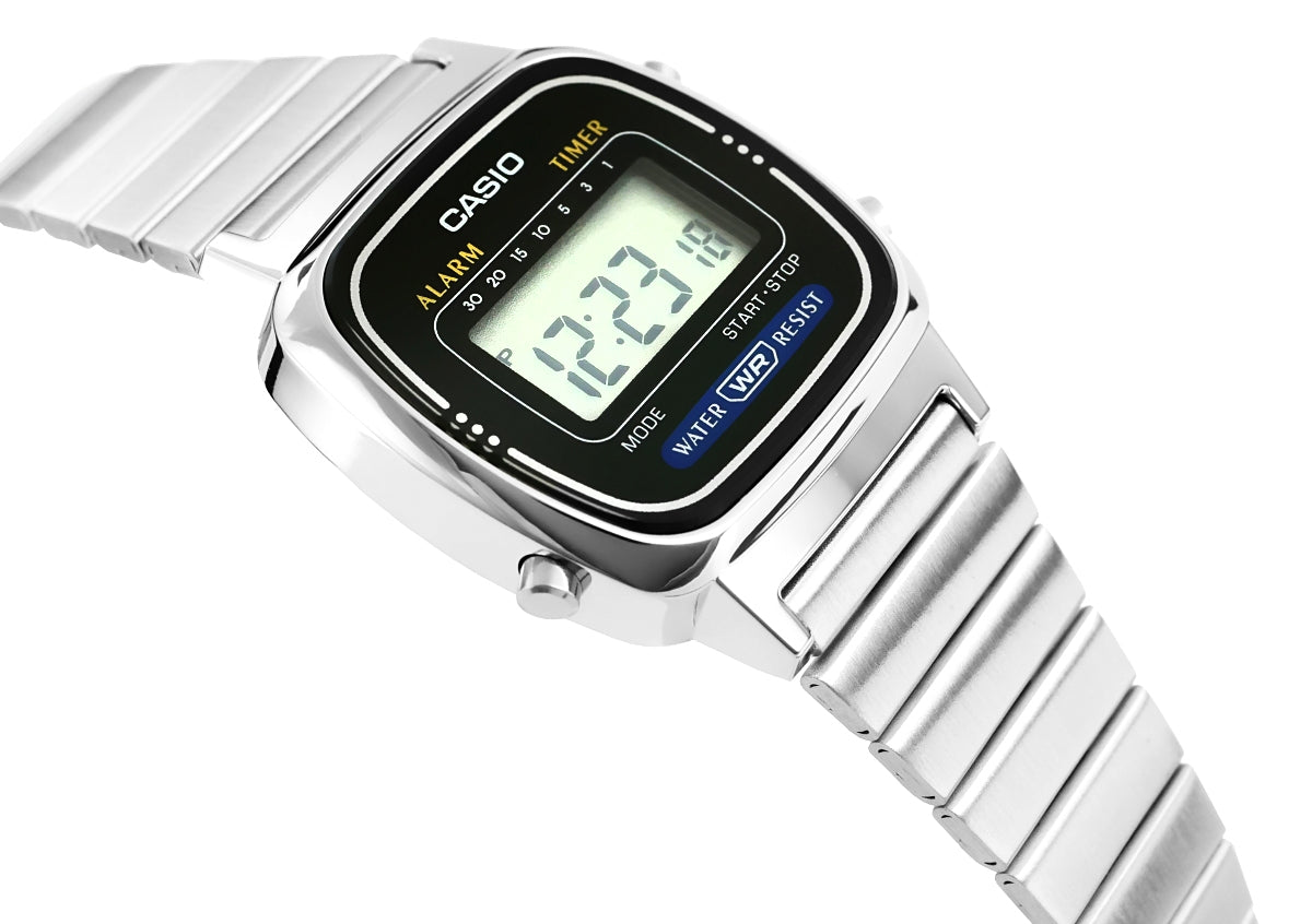 Cyfrowy zegarek dla miłośniczek mody, które cenią sobie indywidualny styl, jednocześnie pozostając na bieżąco z najnowszymi trendami. Jego delikatna, zaokrąglona koperta otoczona metalową bransoletą przywołuje na myśl klasykę lat 70., dodając nuty retro do każdej stylizacji. Dzięki wbudowanemu stoperowi, minutnikowi i alarmowi, ten zegarek to nie tylko ozdoba, ale i praktyczny dodatek dla kobiet ceniących funkcjonalność w pięknej oprawie. Jego delikatne przyciski dają poczucie kontroli nad czasem, a lekka konstrukcja sprawia, że niemal stapia się ze skórą, towarzysząc Ci w każdej chwili dnia.