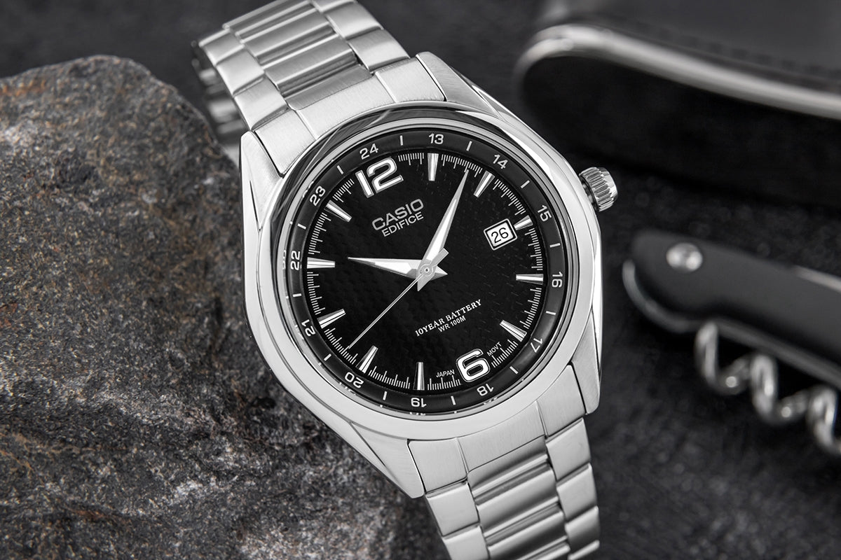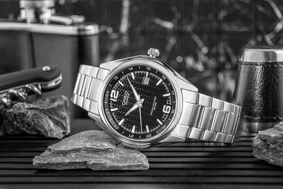 CASIO EDIFICE przewyższa swoją wszechstronność. Bez względu na, czy postawisz na klasyczny model ze stalową bransoletką, sportowy wariant z widocznymi paskami, czy elegancką wersję na pasku ze skóry indywidualnej – każdy EDIFICE na nadgarstku łączy styl sportowy z wyrafinowanym wyglądem.