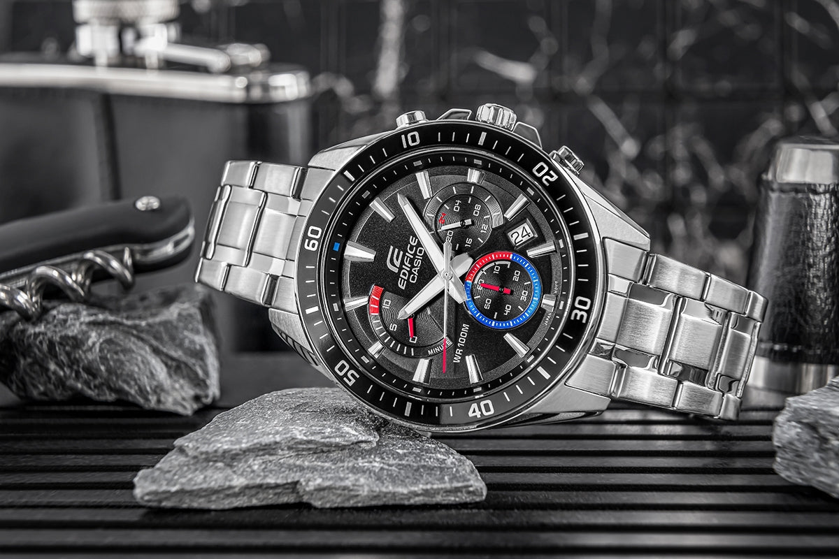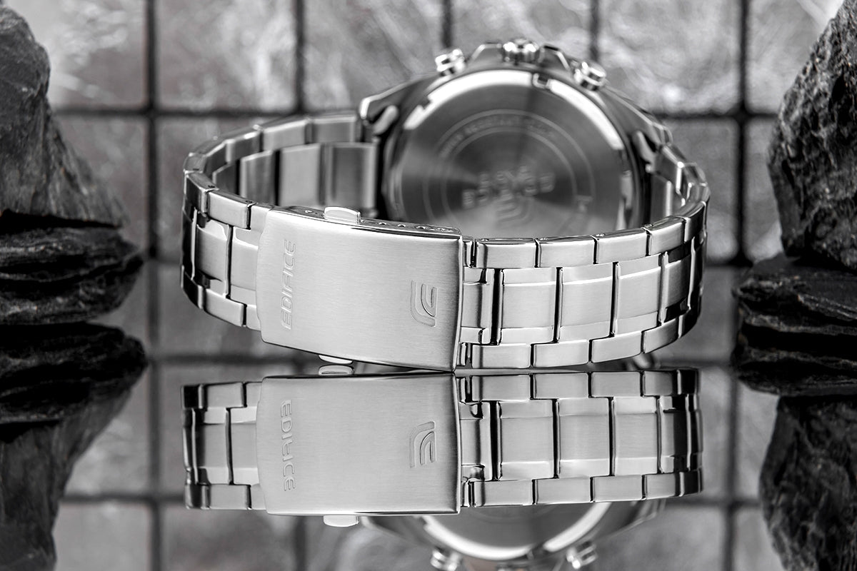 CASIO EDIFICE przewyższa swoją wszechstronność. Bez względu na, czy postawisz na klasyczny model ze stalową bransoletką, sportowy wariant z widocznymi paskami, czy elegancką wersję na pasku ze skóry indywidualnej – każdy EDIFICE na nadgarstku łączy styl sportowy z wyrafinowanym wyglądem.