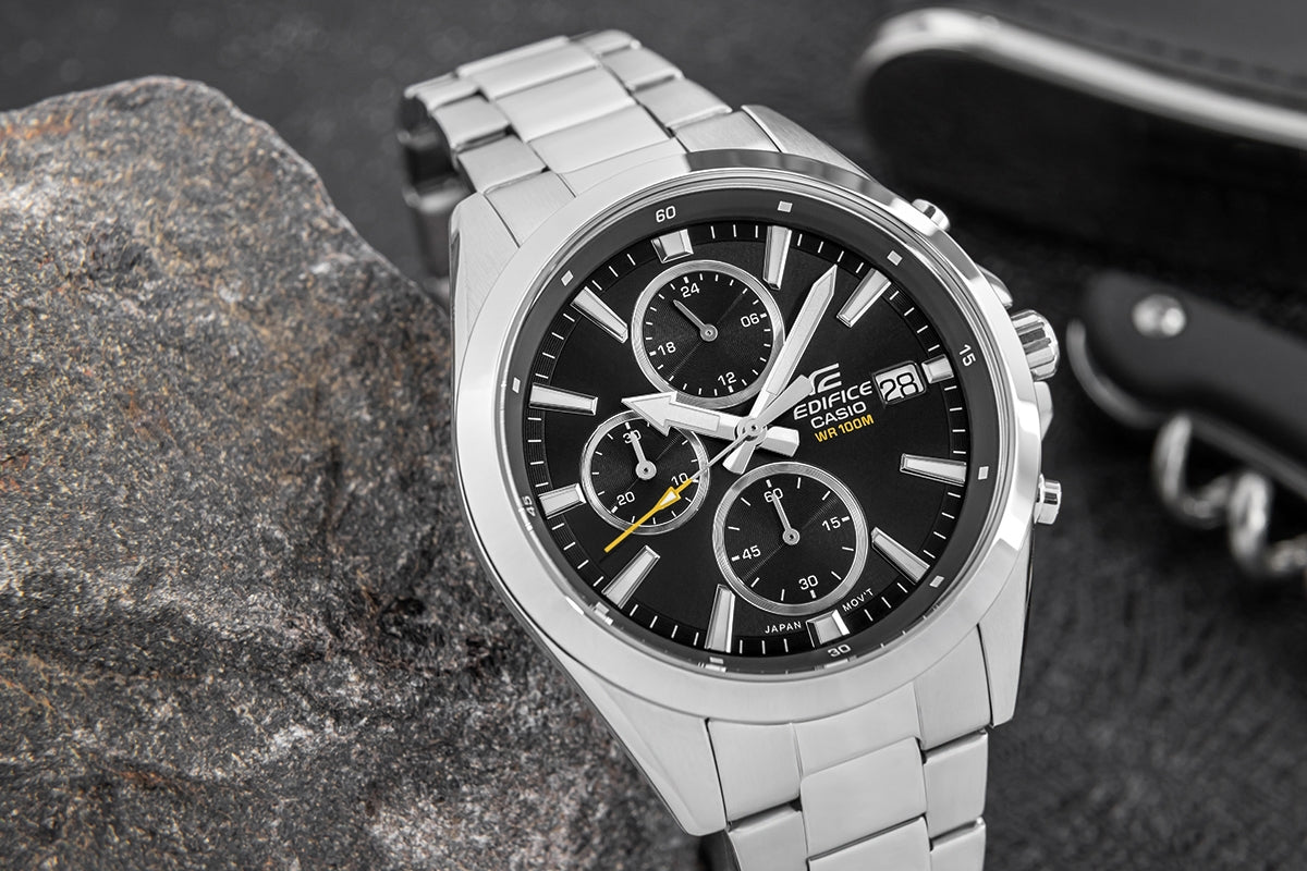 CASIO EDIFICE przewyższa swoją wszechstronność. Bez względu na, czy postawisz na klasyczny model ze stalową bransoletką, sportowy wariant z widocznymi paskami, czy elegancką wersję na pasku ze skóry indywidualnej – każdy EDIFICE na nadgarstku łączy styl sportowy z wyrafinowanym wyglądem.