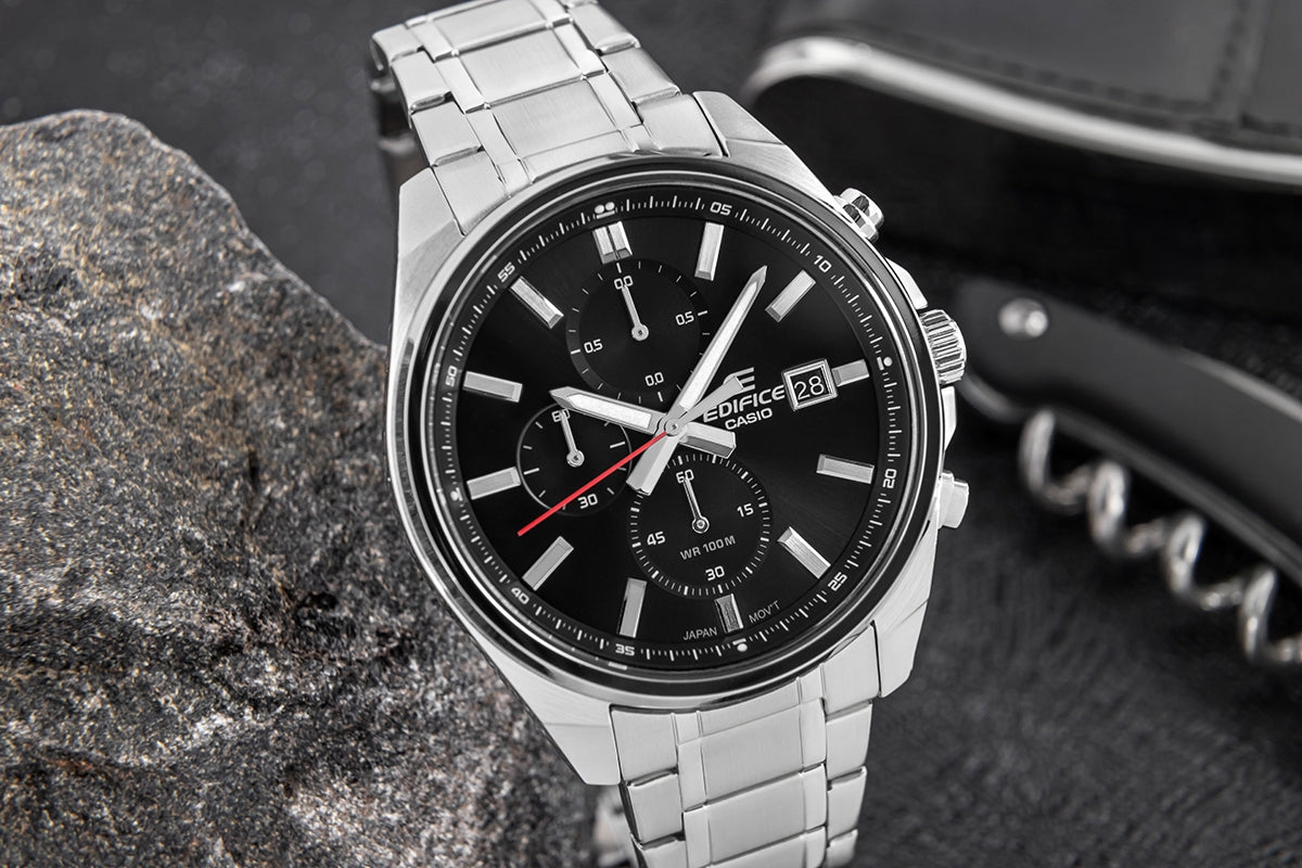 CASIO EDIFICE przewyższa swoją wszechstronność. Bez względu na, czy postawisz na klasyczny model ze stalową bransoletką, sportowy wariant z widocznymi paskami, czy elegancką wersję na pasku ze skóry indywidualnej – każdy EDIFICE na nadgarstku łączy styl sportowy z wyrafinowanym wyglądem.