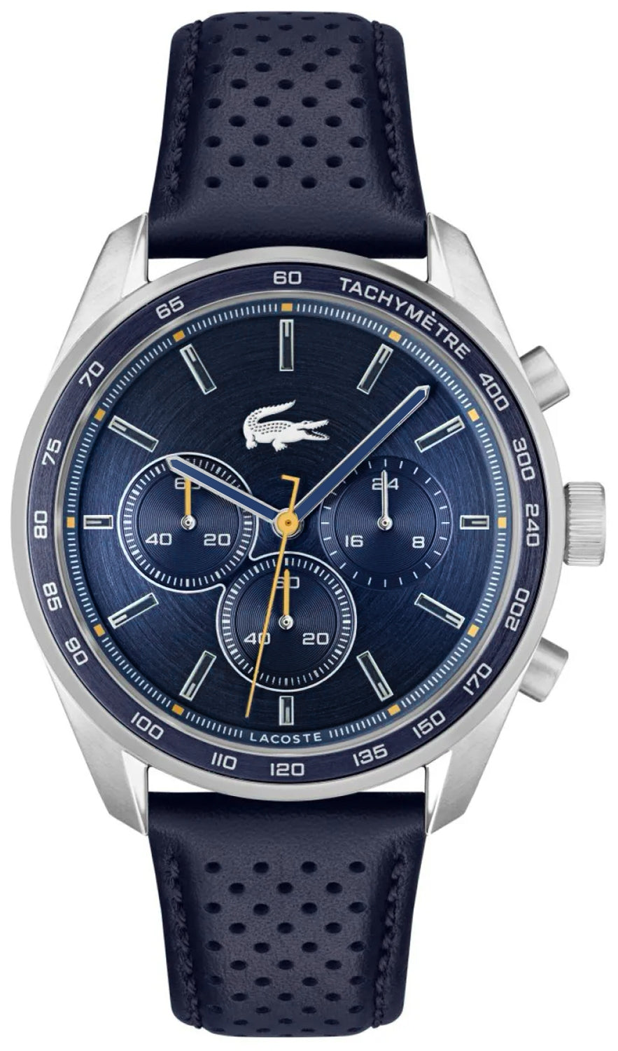 Srebrna koperta, mocna i wyrazista, otula tarczę w głębokim, metalicznym granacie, prosto z morskiej toni – elegancja i dynamika w jednym. Indeksy i dane, które są przechowywane w chłodnym wydaniu srebra z granatem, emanują precyzją i dostępem. Sekundnik? Ten pomarańczowy detal to prawdziwy manifest – odwaga i energia, które pchają do działania. Na nadgarstku spoczywający pasek z perforowanego, granatowego materiału, solidny i stylowy, zapinany na srebrną sprzączkę, która wieńczy dziesięć zestawów doskonałych, dobrej klamry w dobrze skrojonym dopasowaniu. Srebrna koronka to symbol kontroli nad czasem – dla faceta, który nie pozwala, przez czas nim rządził. Delikatne logo Lacoste znajduje się w części tarczy, subtelnie przypomina o prestiżowej marce, bez dominowania i reszty projektu.
