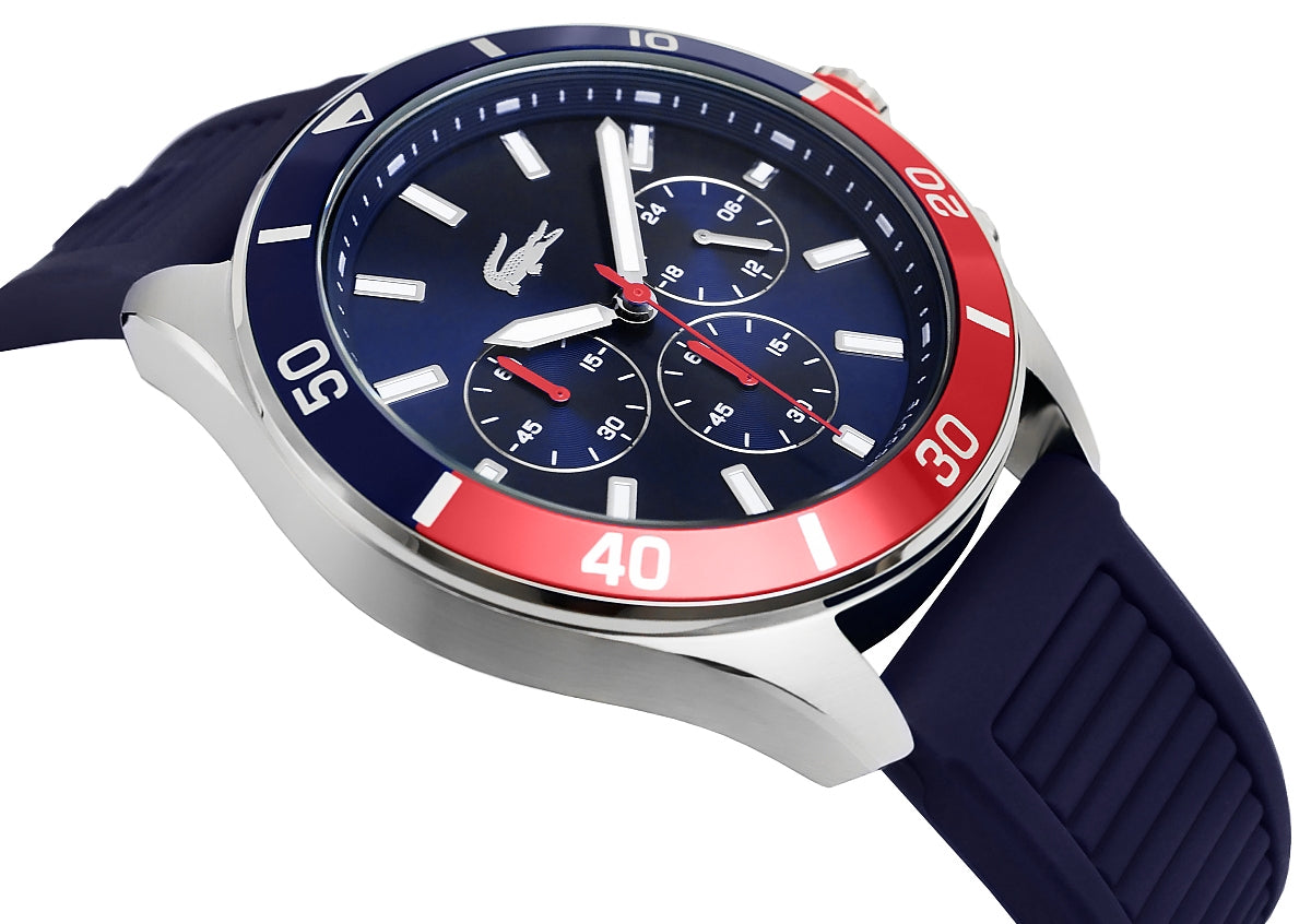 Granatowy cyferblat z czerwonymi akcentami to prawdziwej wartości prawdziwego stylu i energii. Te ostre, wyraziste barwy występujące zegarków dynamicznych, sportowych o charakterze, który nie występuje w miejscu na odpowiedni. Srebrna, stalowa koperta to solidna konstrukcja – gotowa na każde wyzwanie, jak prawdziwy partner, na który można pozwolić. Silikonowy pasek? Idealne rozwiązanie i styl – zapewnia wygodę w największych momentach. Wypukłe detale, takie jak odważne logo LACOSTE, wprowadzają trójwymiarową głębię, dając całościowego mocnego, agresywnego sznytu. Poziome opaski na pasku nie tylko świetny, ale dostępny w jego sportowym, bezkompromisowym charakterze. Ten zegarek to więcej niż czasomierz – to sprzęt dla faceta, który działa na pełnych obrotach, zawsze gotowy do działania. Srebrne logo Lacoste na cyferblacie to wyraz prestiżu i jakości, który stawia kropkę nad "i".